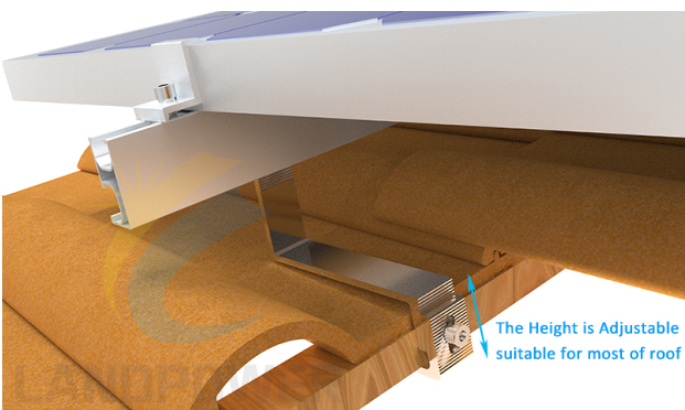 Aluminium Tile Roof Hook is designed for solar pv tile roof mounting installations.it is compatible to most of solar mounting rails, it can easily to fix on roof with and without screws, the tile roof aluminium hook is adjustable on its height to maximize compatibility on many roofs. The Aluminium tile roof hook is light weight but better load bearing capacity which minimize bending under load and the risk of tile cracking. The aluminum roof hook is adjustable on height,maximize its flexibility to fixed on tile roof.